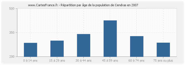 - Population de Cendras de 45 à 59 ans : 425 habitants