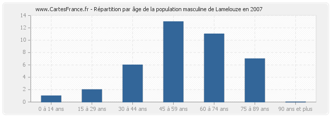 - Hommes de 45 à 59 ans habitant Lamelouze : 13