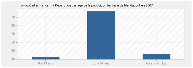 - Femmes de 20 à 64 ans habitant Mandagout : 97