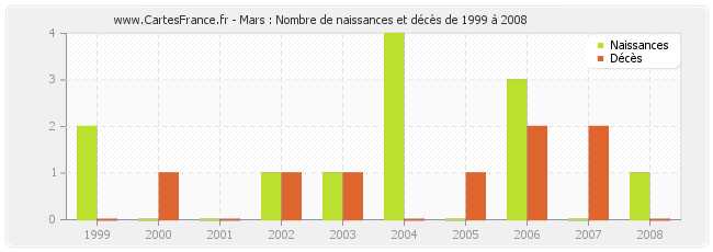 La population de Mars était de 174 habitants en 2007, 162 habitants en 1999, 126 habitants en 1990, 71 habitants en 1982, 48 habitants en 1975 et 59 habitants en 1968.