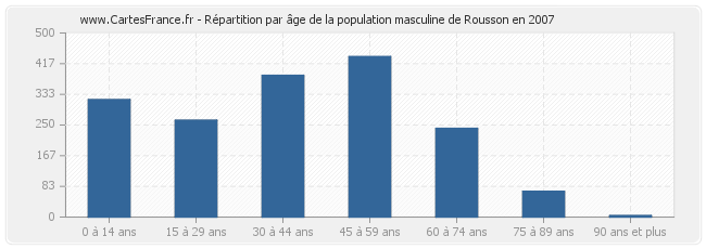- Population de Rousson de 60 à 74 ans : 458 habitants