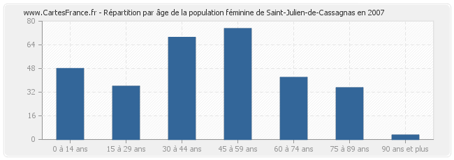 Répartition de la population féminine de Saint-Julien-de-Cassagnas par âge en 2007 :
