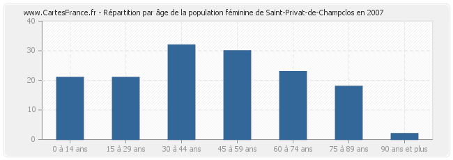 - Femmes de 30 à 44 ans habitant Saint-Privat-de-Champclos : 32