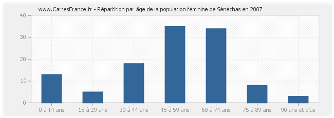 - Femmes de 45 à 59 ans habitant Sénéchas : 35