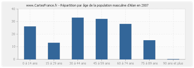 - Hommes de 0 à 14 ans habitant Alan : 26