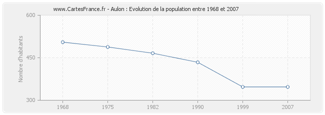 La population d'Aulon était de 347 habitants en 2007, 347 habitants en 1999, 434 habitants en 1990, 466 habitants en 1982, 488 habitants en 1975 et 505 habitants en 1968.