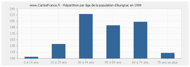 - Population d'Aurignac de 30 à 44 ans : 232 habitants