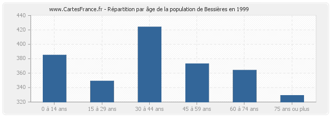 - Population de Bessières de 15 à 29 ans : 349 habitants