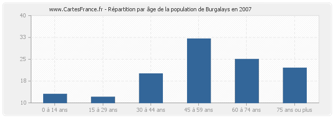 - Population de Burgalays de 45 à 59 ans : 32 habitants