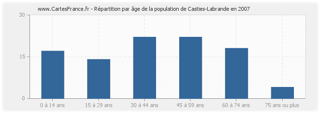 - Population de Casties-Labrande de 30 à 44 ans : 22 habitants