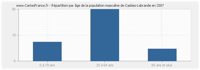 - Hommes de 20 à 64 ans habitant Casties-Labrande : 30