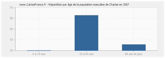 Répartition de la population masculine de Charlas par âge en 2007 :