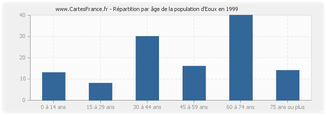 - Population d'Eoux de 60 à 74 ans : 40 habitants