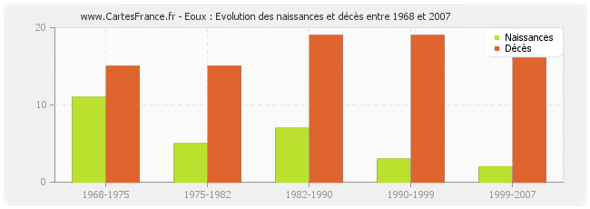 Eoux : évolution des naissances et décès de 1968 à 2007