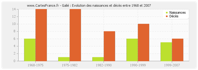 - Galié en 2007 : 0 naissances et 1 décès