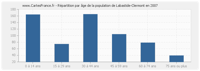 - Population de Labastide-Clermont de 30 à 44 ans : 165 habitants