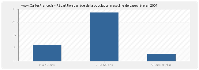 - Hommes de 20 à 64 ans habitant Lapeyrère : 28