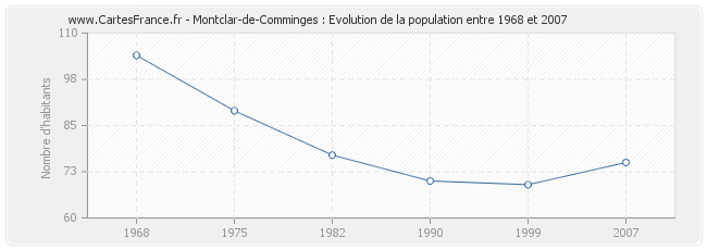 - Population de Montclar-de-Comminges en 1968 : 104 habitants