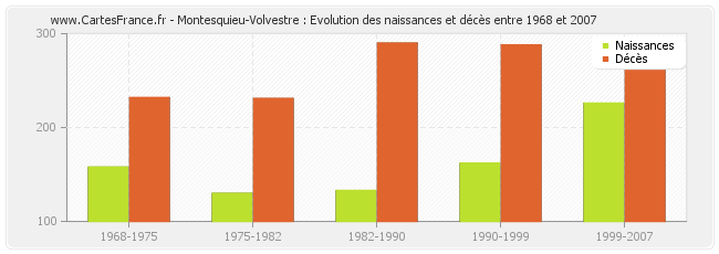 Montesquieu-Volvestre : évolution des naissances et décès de 1968 à 2007