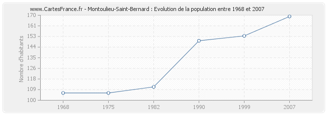 La population de Montoulieu-Saint-Bernard était de 169 habitants en 2007, 153 habitants en 1999, 149 habitants en 1990, 111 habitants en 1982, 106 habitants en 1975 et 106 habitants en 1968.