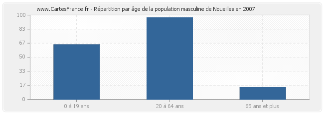 Répartition de la population masculine de Noueilles par âge en 2007 :