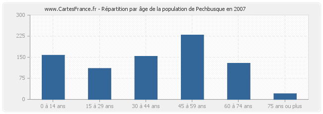 - Population de Pechbusque de 45 à 59 ans : 229 habitants