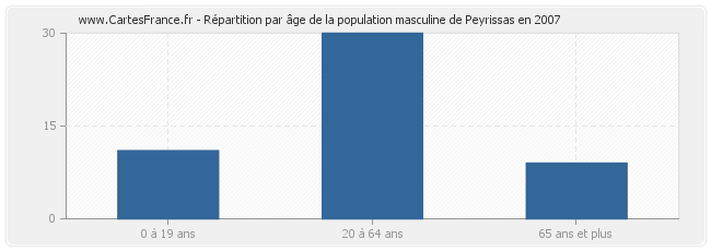 - Hommes de 20 à 64 ans habitant Peyrissas : 30
