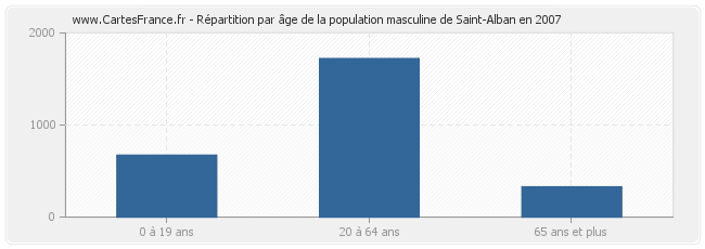 Répartition de la population masculine de Saint-Alban par âge en 2007 :