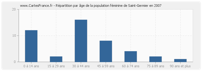 Répartition de la population féminine de Saint-Germier par âge en 2007 :