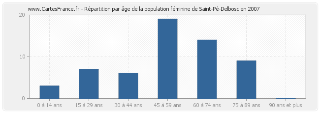 - Femmes de 45 à 59 ans habitant Saint-Pé-Delbosc : 19