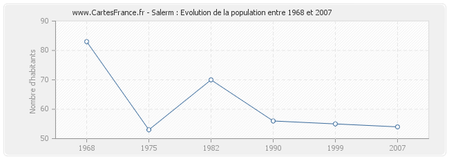 La population de Salerm était de 54 habitants en 2007, 55 habitants en 1999, 56 habitants en 1990, 70 habitants en 1982, 53 habitants en 1975 et 83 habitants en 1968.