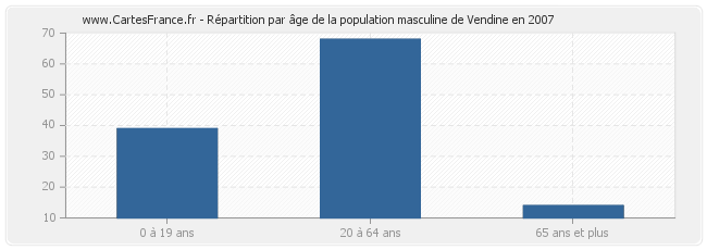 - Hommes de 20 à 64 ans habitant Vendine : 68