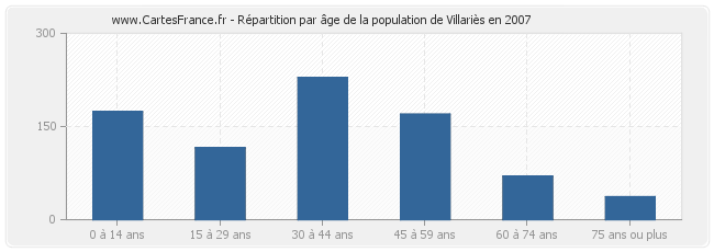 - Population de Villariès de 30 à 44 ans : 229 habitants