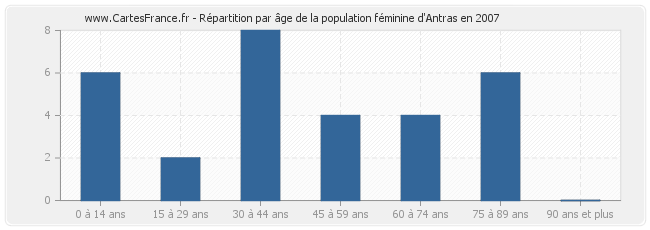 Répartition de la population féminine d'Antras par âge en 2007 :