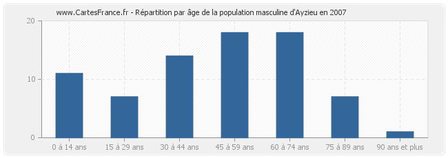 Répartition de la population masculine d'Ayzieu par âge en 2007 :