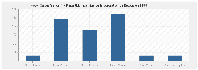 - Population de Bétous de 45 à 59 ans : 17 habitants