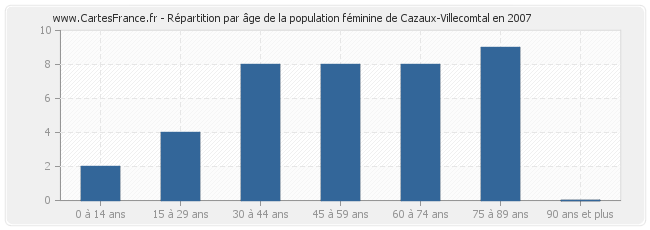 Répartition de la population féminine de Cazaux-Villecomtal par âge en 2007 :