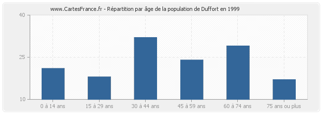 - Population de Duffort de 30 à 44 ans : 32 habitants