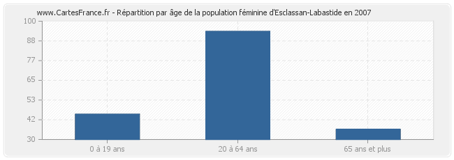 Répartition de la population féminine d'Esclassan-Labastide par âge en 2007 :