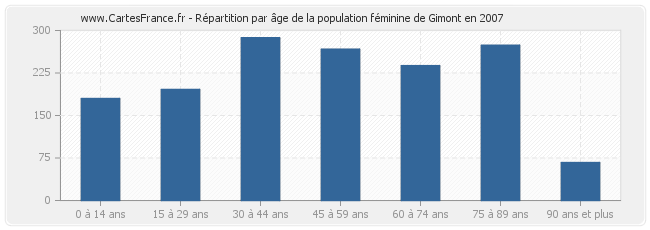 Répartition de la population féminine de Gimont par âge en 2007 :
