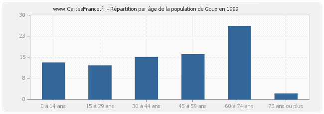 - Population de Goux de 60 à 74 ans : 26 habitants