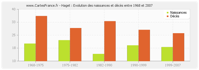 La population de Haget était de 303 habitants en 2007, 293 habitants en 1999, 329 habitants en 1990, 314 habitants en 1982, 277 habitants en 1975 et 289 habitants en 1968.