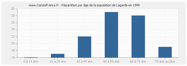 - Population de Lagarde de 45 à 59 ans : 29 habitants