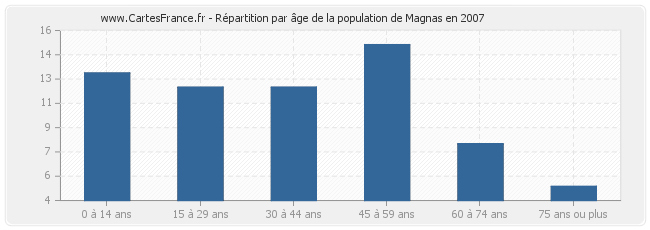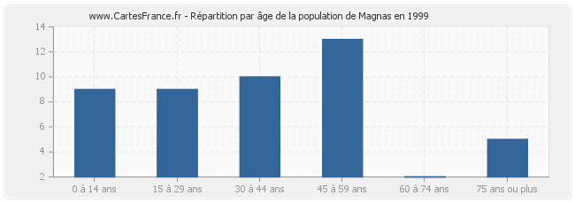 - Population de Magnas de 45 à 59 ans : 13 habitants