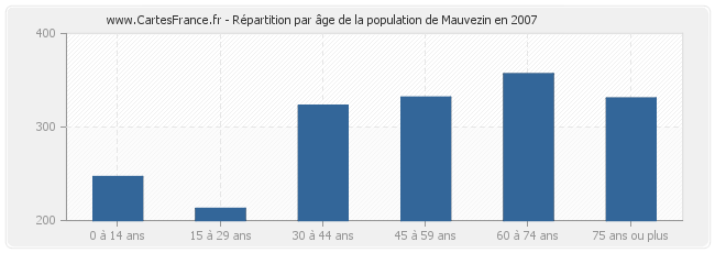 - Population de Mauvezin de 60 à 74 ans : 357 habitants