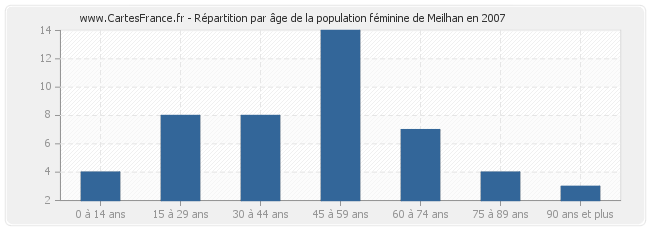 - Femmes de 45 à 59 ans habitant Meilhan : 14