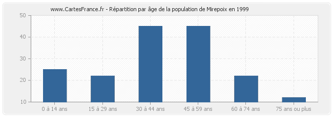 - Population de Mirepoix de 30 à 44 ans : 45 habitants