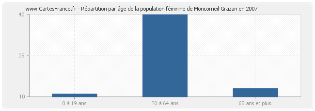 Répartition de la population féminine de Moncorneil-Grazan par âge en 2007 :