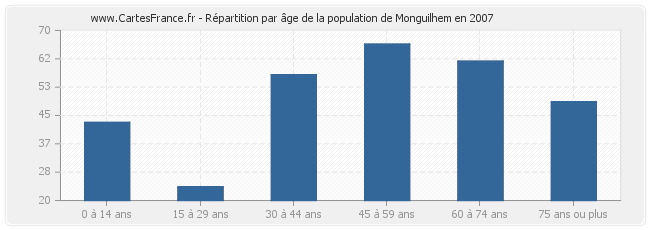 - Population de Monguilhem de 45 à 59 ans : 66 habitants