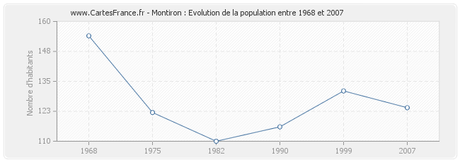 Historique de la population de Montiron de 1968 à 2007 :